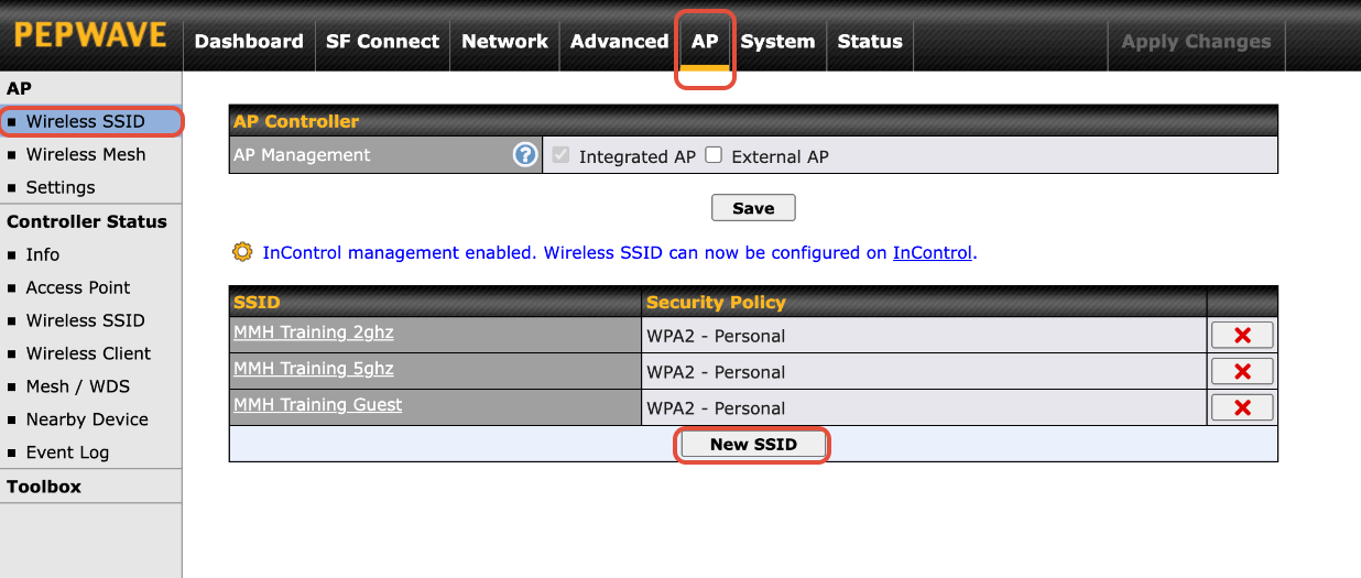 2. Navigate to the Wireless AP Tab & Create your SSID(s)