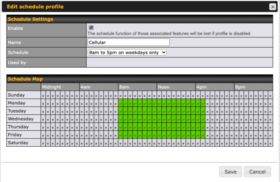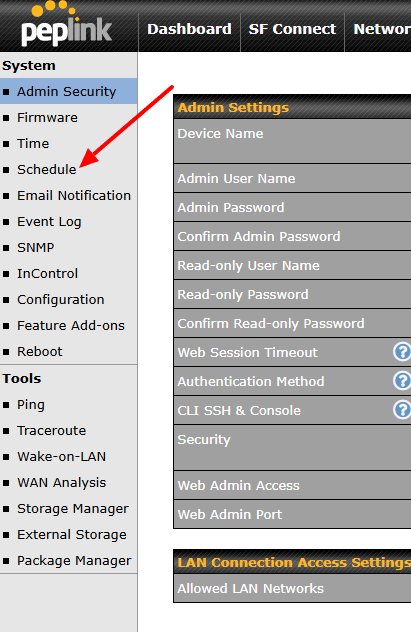 Being able to schedule times where your connections are active can be very useful depending on your needs. Let’s say you want to be connected to your cellular network during working hours but after work switch over to a Wi-Fi Network. You need to create a “schedule” inside the Peplink admin software. This article will explain how to do this.