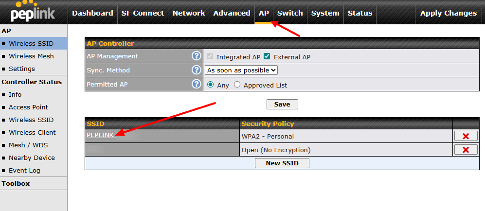 5. Once you have set up the schedule the way you desire, navigate to the AP tab where you can select the SSID (WiFi network) you wish to set a schedule for.