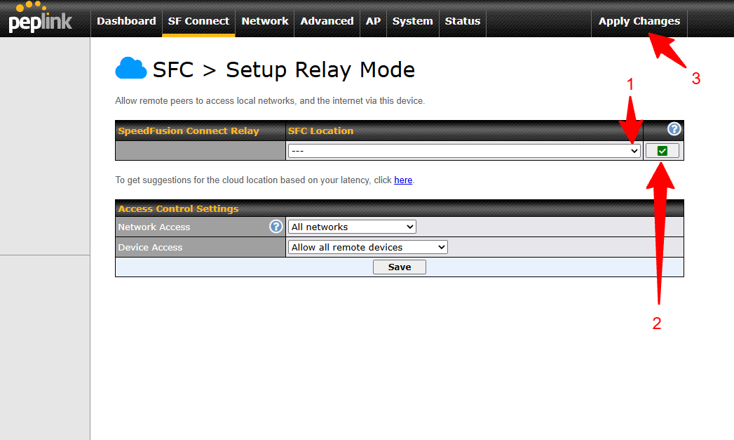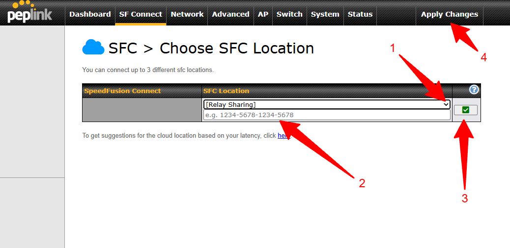 2. Once you are in the Peplink's local console, click on the SFC Connect tab.