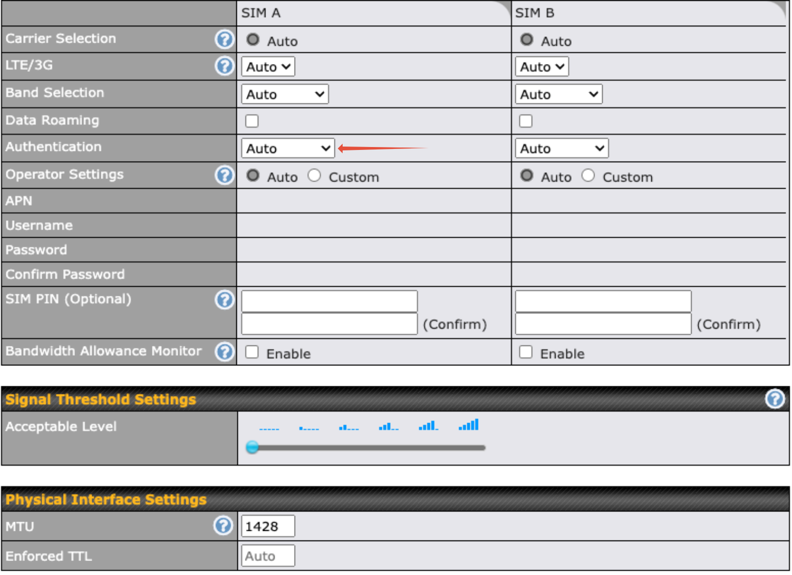 Scroll down to Cellular Settings, select Auto under Operator Settings. Make sure to select the proper SLOT A or B based on where your SIM card is located. Change the section corresponding to the correct SIM card to auto. Any custom APN setting from your previous plan must be cleared.
