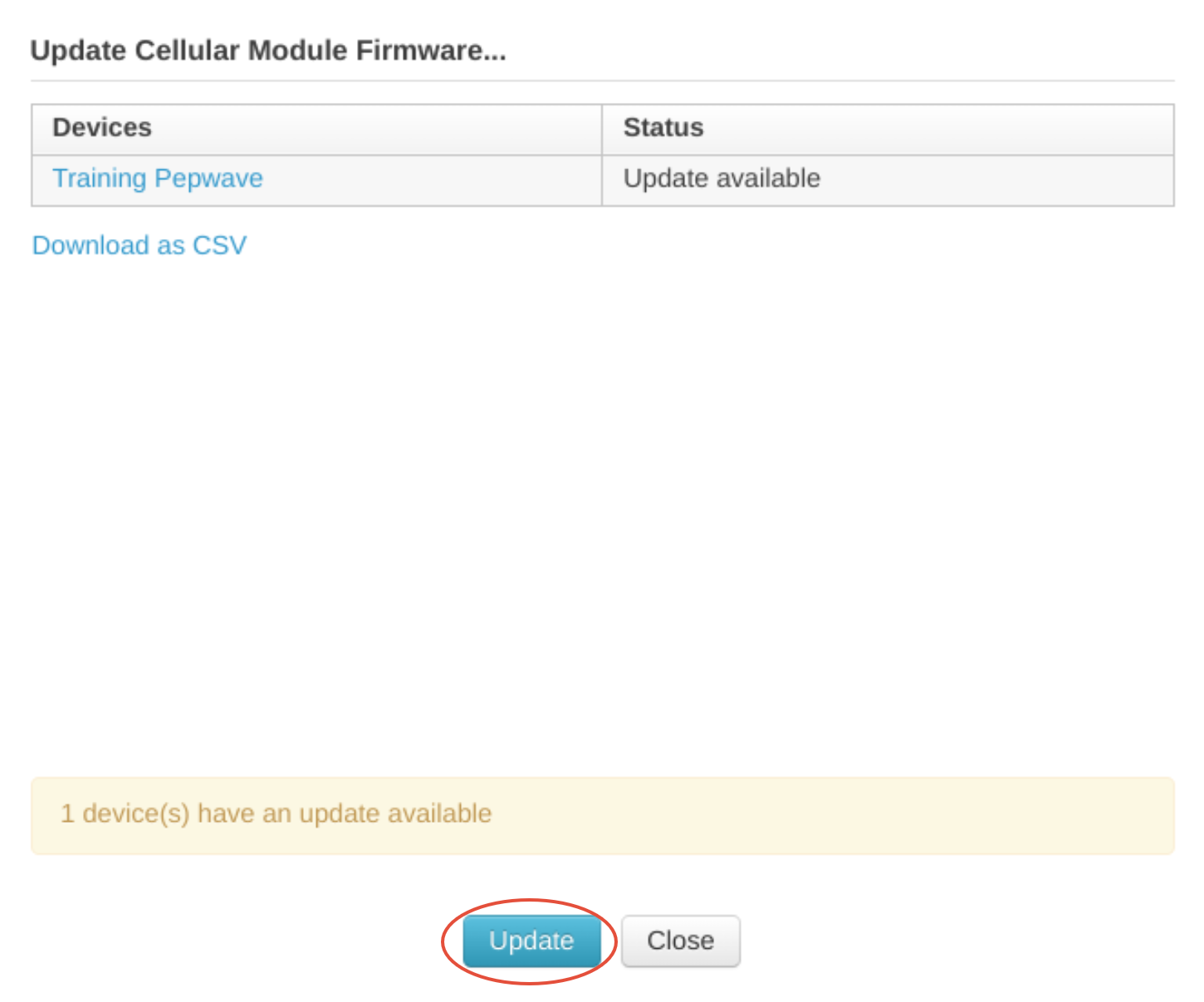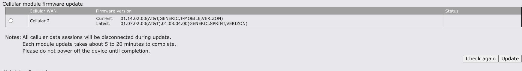 If your 'current' and 'latest' match, then you are updated! If they are different, you are able to select the modem you wish to update and you will have an 'Update' button to the right where you can force an update again.